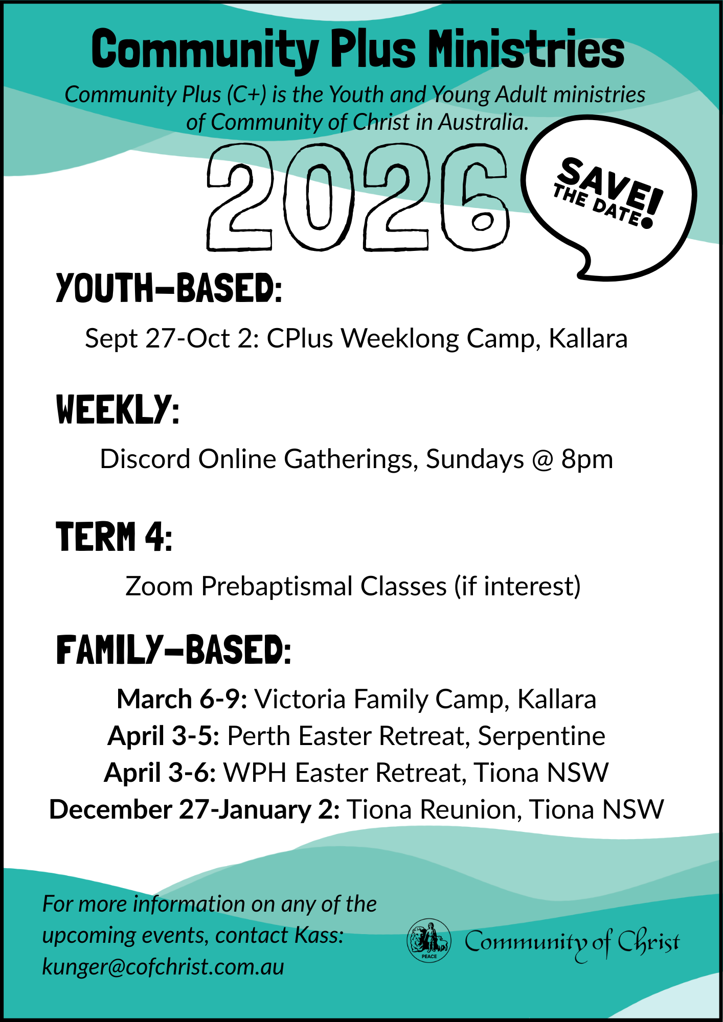 If you have questions, want to know more, or feel drawn to participate, please reach out to Kass Unger at kunger@cofchrist.com.au. There is a place for you in these ministries, and we look forward to connecting with you in the year ahead.